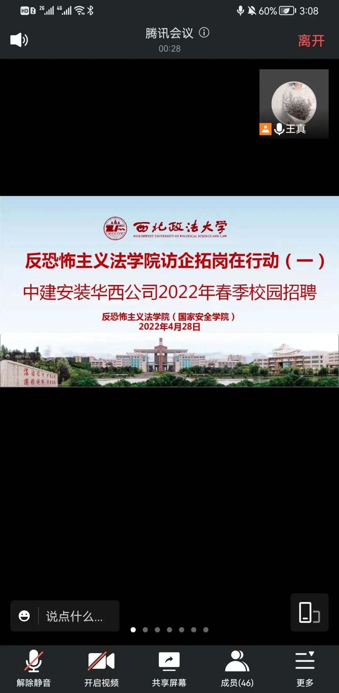 为贯彻落实党中央、国务院“稳就业”“保就业”、《“十四五”就业促进规划》决策部署,落实教育部、省教育厅关于做好 2022届毕业生就业创业工作的相关要求,深入推进成人网站 2022届毕业生顺利就业,成人网站 于4月28日在反恐法学院会议室举行了中建安装华西公司2022年春季专场招聘会。成人网站 副校长王健、学院党委书记李政敏、院长舒洪水、副书记侯颖怡、副院长王东明参加。成人网站 杰出校友,中建安装华西公司干部人事部副部长李强带着10余岗位参加了现场招聘宣讲会。会议采取线上线下相结合的方式,成人网站 近100名毕业生参加了宣讲,活动还吸引了政治与公共管理学院等其他学院毕业生参加。会议由党委书记李政敏主持。
