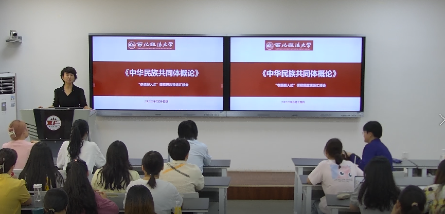 为了更好地贯彻习近平总书记在全国高校思想政治工作会议上的重要讲话精神,挖掘课堂思政的优势资源,培养大学生正确的历史观、民族观、价值观和爱国主义理念,成人网站 在《中华民族共同体概论》的教学过程中,融入了“专题嵌入式”思政教育的内容,对《中华民族共同体概论》中涉及到的关于中国道路、中国制度、中国特色社会主义文化自信、民族政策以及人口发展等问题开展了有针对性地讨论,并按照课后讨论,课堂展示、教师点评的互动模式进行启发式引导教学,收到了良好的教学效果。