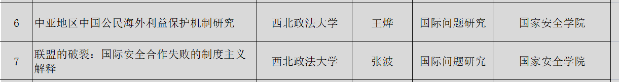 近日,2022年国家社科基金年度项目立项名单公布,成人网站 两个项目成功立项。分别为:王烨老师负责的《中亚地区中国公民海外利益保护机制研究》和张波老师负责的《联盟的破裂:国际安全合作失败的制度主义解释》。
