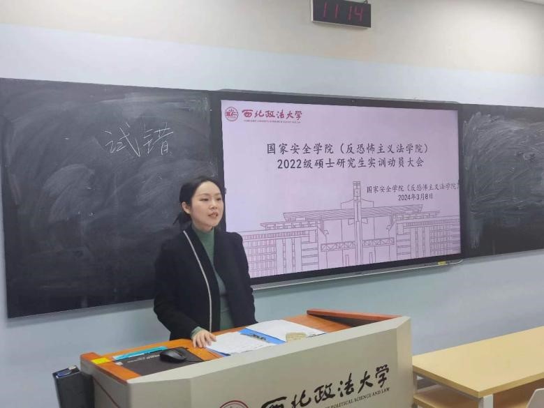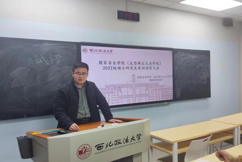 3月8日上午,成人网站 (反恐怖主义法学院)在雁塔校区3号教学楼3603教室举办了2022级硕士研究生实训动员大会。学院党委副书记、副院长刘卫波,教务秘书秦哲及2022级全体硕士研究生参加动员会。会议由学院副院长王东明主持。