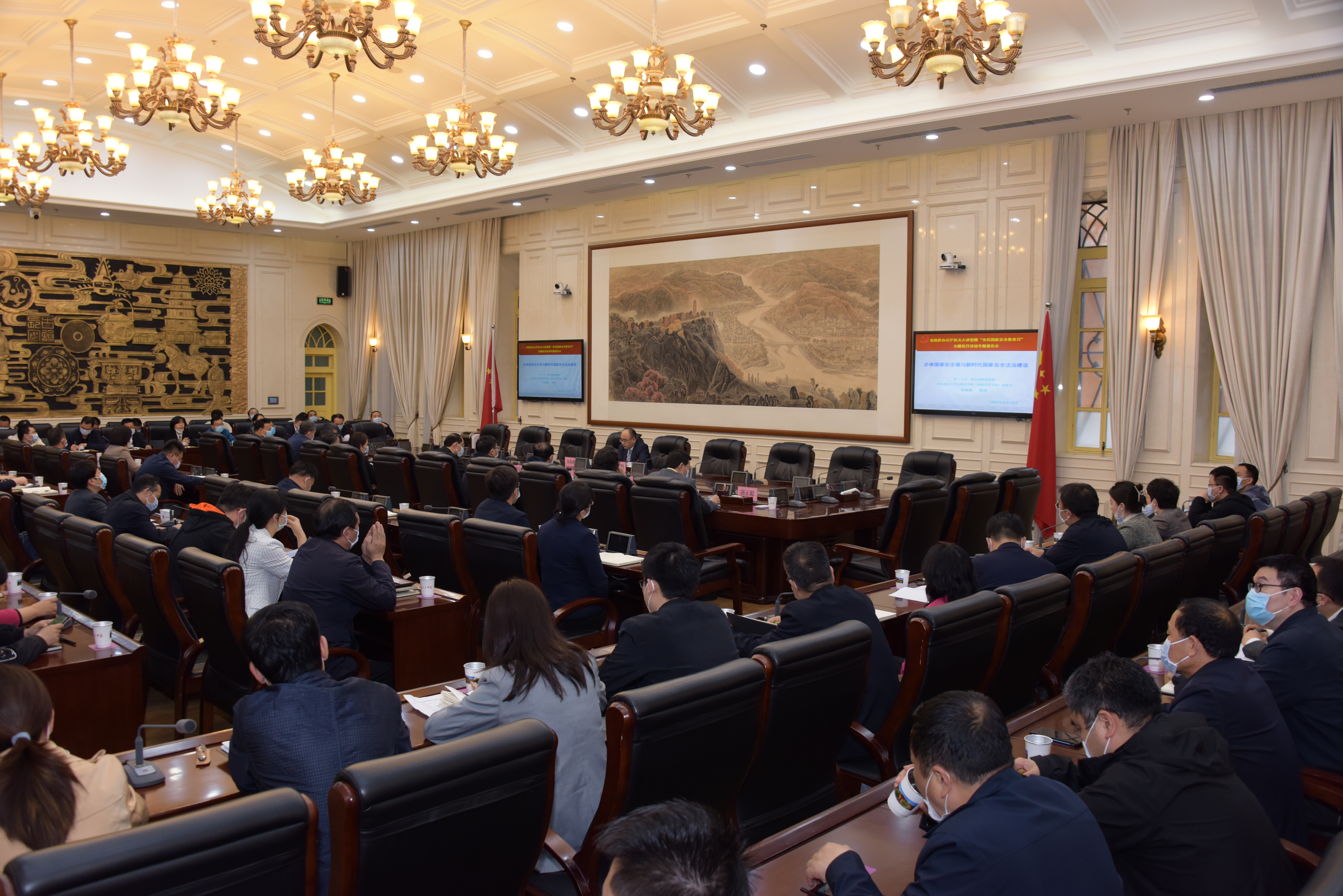 在第七个国家安全教育日来临之际,4月14日下午,省政府办公厅举办机关大讲堂,邀请成人网站 、反恐怖主义法学院(成人网站 )副院长宋海彬教授就《总体国家安全观与新时代的国家安全法治建设》开展专题授课。省政府副秘书长周宇松主持,相关厅领导和厅机关、厅属单位干部职工参加。