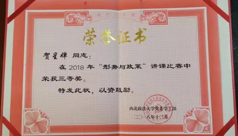 2019年学生工作会议在校务楼二楼报告厅召开。校党委学工部对上一学年学生工作表现突出的人员进行表彰。反恐法学院团委书记席捷荣获2017-2018学年优秀辅导员,2017级辅导员贺星婵荣获第一届形式与政策讲课比赛三等奖。