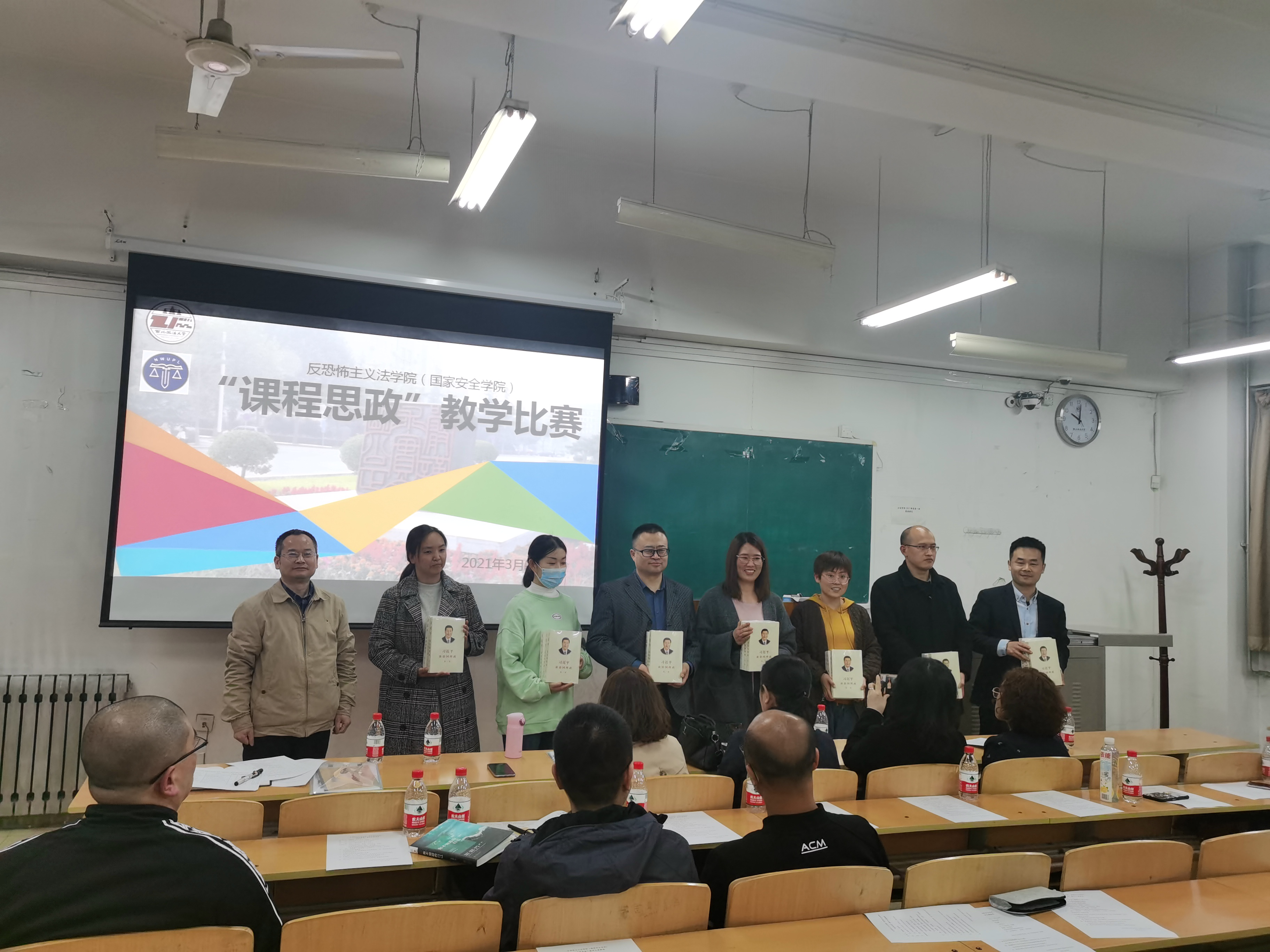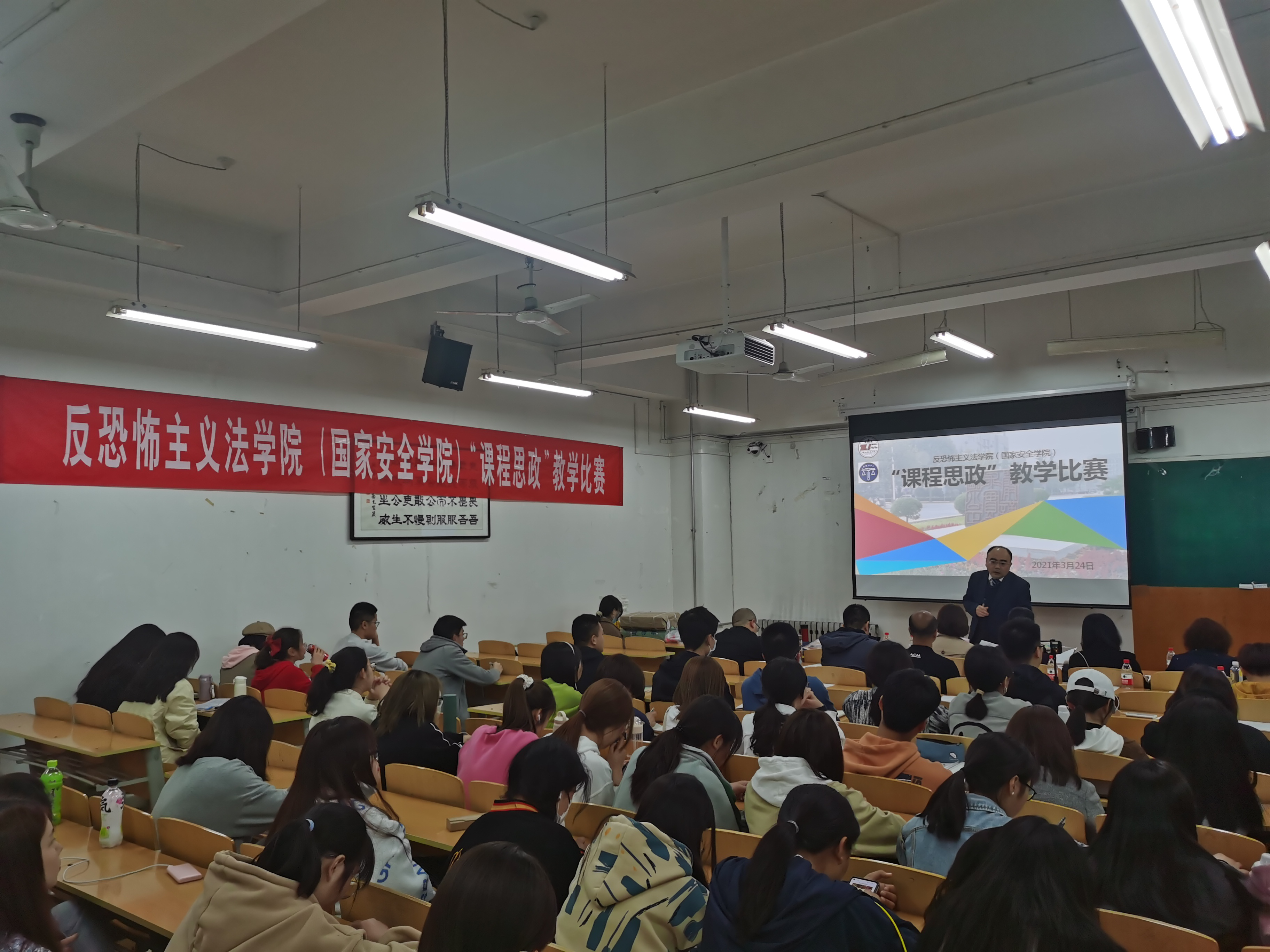 3月24日晚7点半,反恐怖主义法学院(成人网站 )首届“课程思政”教学比赛在长安校区天平楼B107教室举行。比赛由副院长宋海彬教授主持,党委书记李政敏同志做了开场致辞,院长舒洪水教授为获奖教师颁奖并总结讲话,成人网站 访问学者、新疆医科大学马克思主义学院殷冀锋副教授担任了本次比赛的学术点评人。学院青年教师代表与2021级全体学生一起全程观摩了比赛。